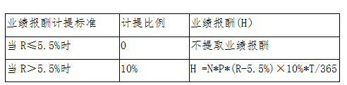 以投资者年化收益率,作为计提业绩报酬的基准。本集合计划的业绩报酬计提基准是年化5.5%。当年化收益率不高于5.5%时,管理人不提取业绩报酬;当年化收益率高于5.5%时,管理人对超过5.5%的收益部分提取10%的业绩报酬。在委托人退出和集合计划终止时提取业绩报酬的,业绩报酬H从退出资金中扣除。